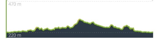 | 56 km | 14 km/h | unebener Untergrund | hügelig | 360 m |