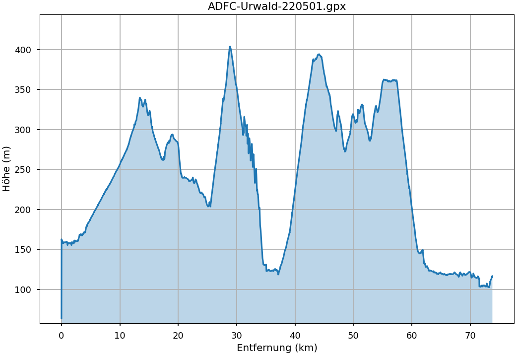 | Tourlänge | Geschwindigkeit | Oberflächenqualität | Anstiege | Höhenmeter |