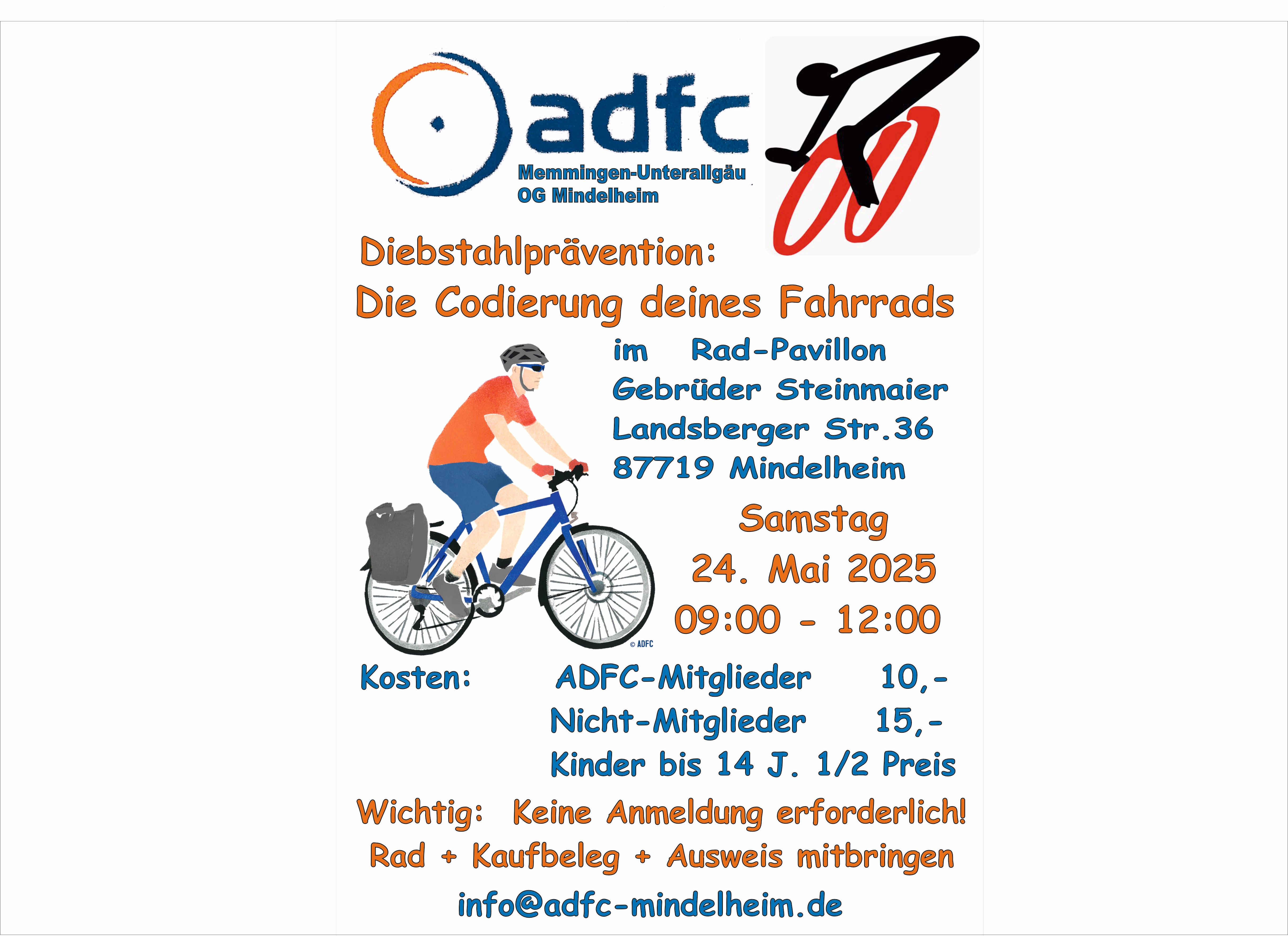 Mitzubringen: Fahrrad, Eigentumsnachweis (Kaufvertrag) und Personalausweis