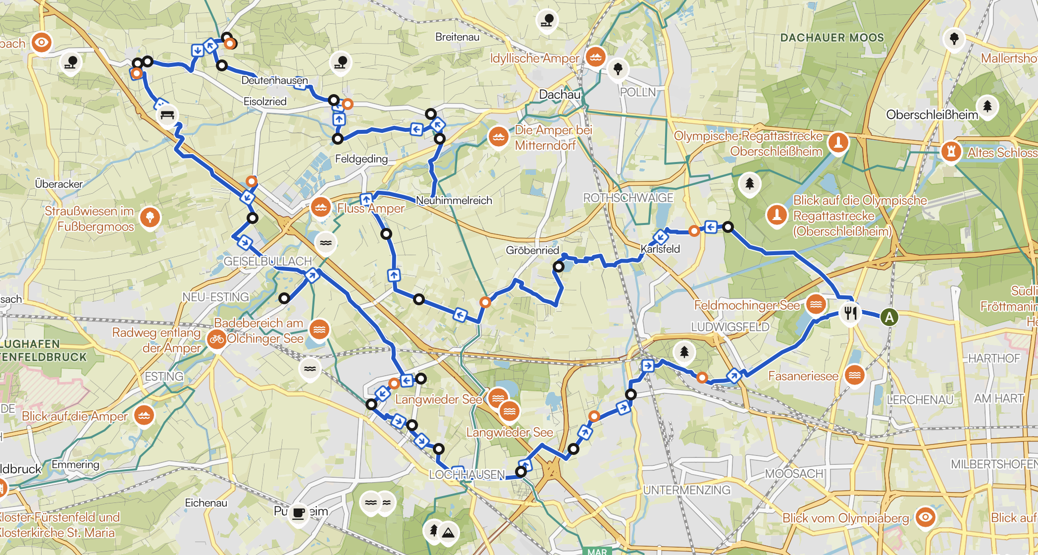 Die Tour verbindet die Abschnitte 1 und 2 des Räuber Kneißl Radwegs. Im ersten Teil unsere Tour fahren wir durch Karlsfeld - Günding - Bergkirchen - Kreuzholzhausen nach Lauterbach. Im zweiten Abschnitt geht es über Geiselbullach nach Gröbenzell und weiter über Lochhausen - Allach - zurück nach Feldmoching.