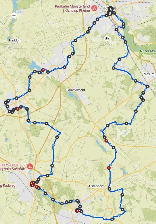 | 67 km | 20 km/h | fester Belag | flach | 170 m |