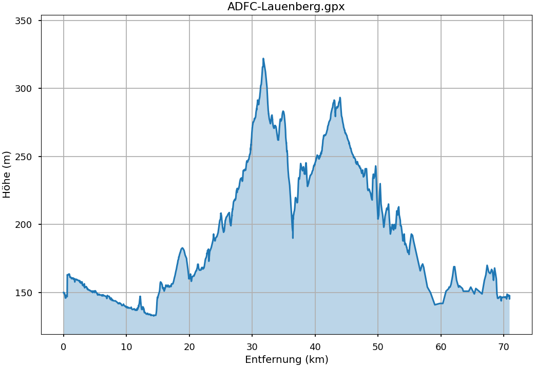 Fahrstrecke: Leine-Heide-Radweg über Bovenden bis Nörten-Hardenberg, Großenrode - Moringen - Ducksteinquelle (Rast) - längere Steigung entlang der Ahlsburg - kräftige Abfahrt zum Naturbad Lauenberg (längerer Aufenthalt mit Gelegenheit zum Baden und Stärken in der Cafeteria des Schwimmbads) - Fredelsloh - Hardegsen (Zwischenstopp im Eiscafé Hartmann) - Gladebeck - Haste - Lenglern - Göttingen.